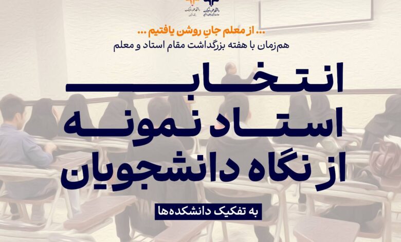 گفتنی است دانشجویان تا روز پنجشنبه ۱۸ اردیبهشت فرصت دارند تا با مراجعه به لینک زیر، استاد نمونه از نگاه خود را معرفی کنند: