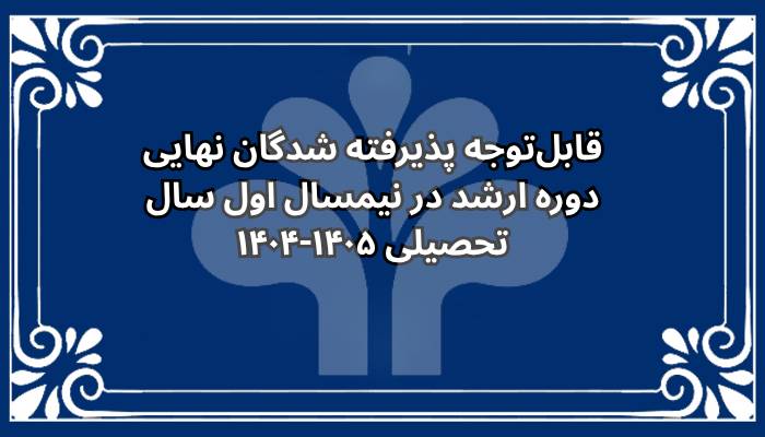 در نیمسال اول سال تحصیلی ۱۴۰۵-۱۴۰۴: قابلتوجه پذیرفتهشدگان نهایی دوره کارشناسیارشد