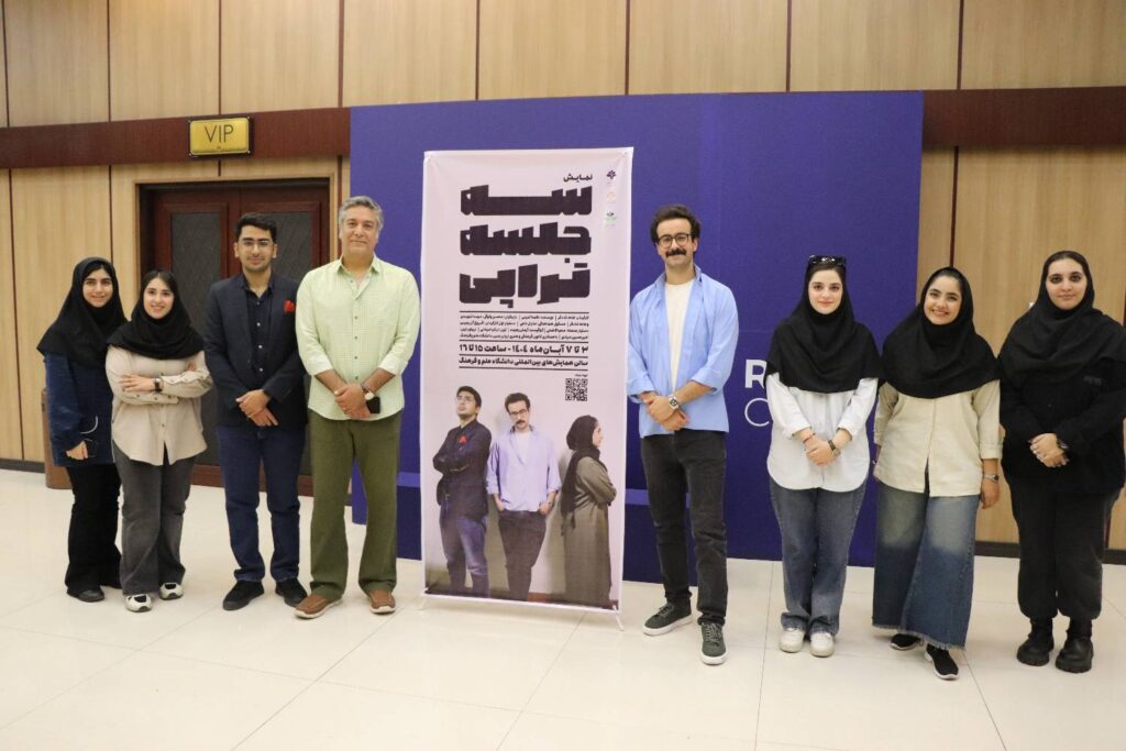 افتتاحیه نمایش «سه جلسه تراپی» با حضور حمیدرضا پگاه، بازیگر مطرح سینما و تلویزیون و مشارکت گسترده دانشجویان روز ۳ آبان ۱۴۰۴ در سالن همایشهای بینالمللی دانشگاه علم و فرهنگ برگزار شد.