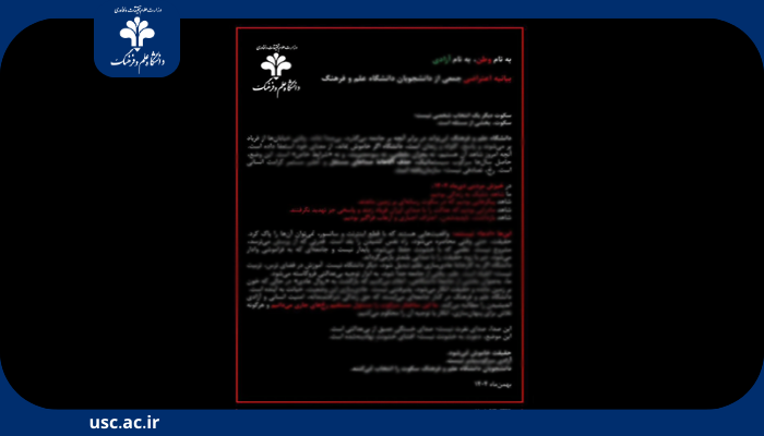 روشنسازی دانشگاه علم و فرهنگ پیرامون بیانیه منتشرشده منتسب به جمعی از دانشجویان