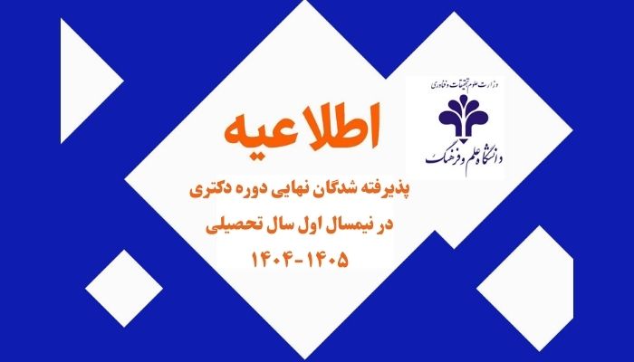 اطلاعیه پذیرفته شدگان نهایی دوره دکتری در نیمسال اول سال تحصیلی 1404_1405