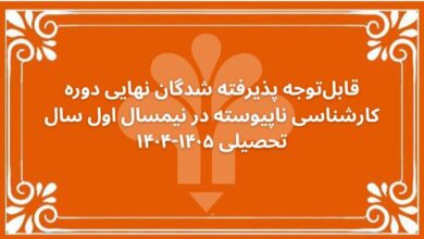 زمان و نحوه ثبت نام پذیرفته شدگان نهایی دوره کارشناسی ناپیوسته در نیمسال اول سال تحصیلی۱۴۰۴-۱۴۰۳